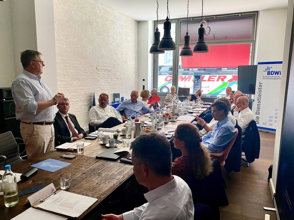36 Grad in Berlin; und dennoch ließen es sich die Mitglieder und Gäste des BDWi nicht nehmen, engagiert im Rahmen der Mitgliederversammlung zu diskutieren. Zu Gast waren der Berliner Journalist Gunnar Schupelius und der frühere langjährige Erste Parlamentarische Geschäftsführer der CDU/CSU-Bundestagsfraktion Michael Grosse-Brömer. Die Mitgliederversammlung fand in den Räumlichkeiten des VdR – Der Tabakmittelstand – Der Tabakmittelstand statt. BDWi-Präsident Michael H. Heinz dankte dem VdR ganz herzlich für die Gastfreundschaft.