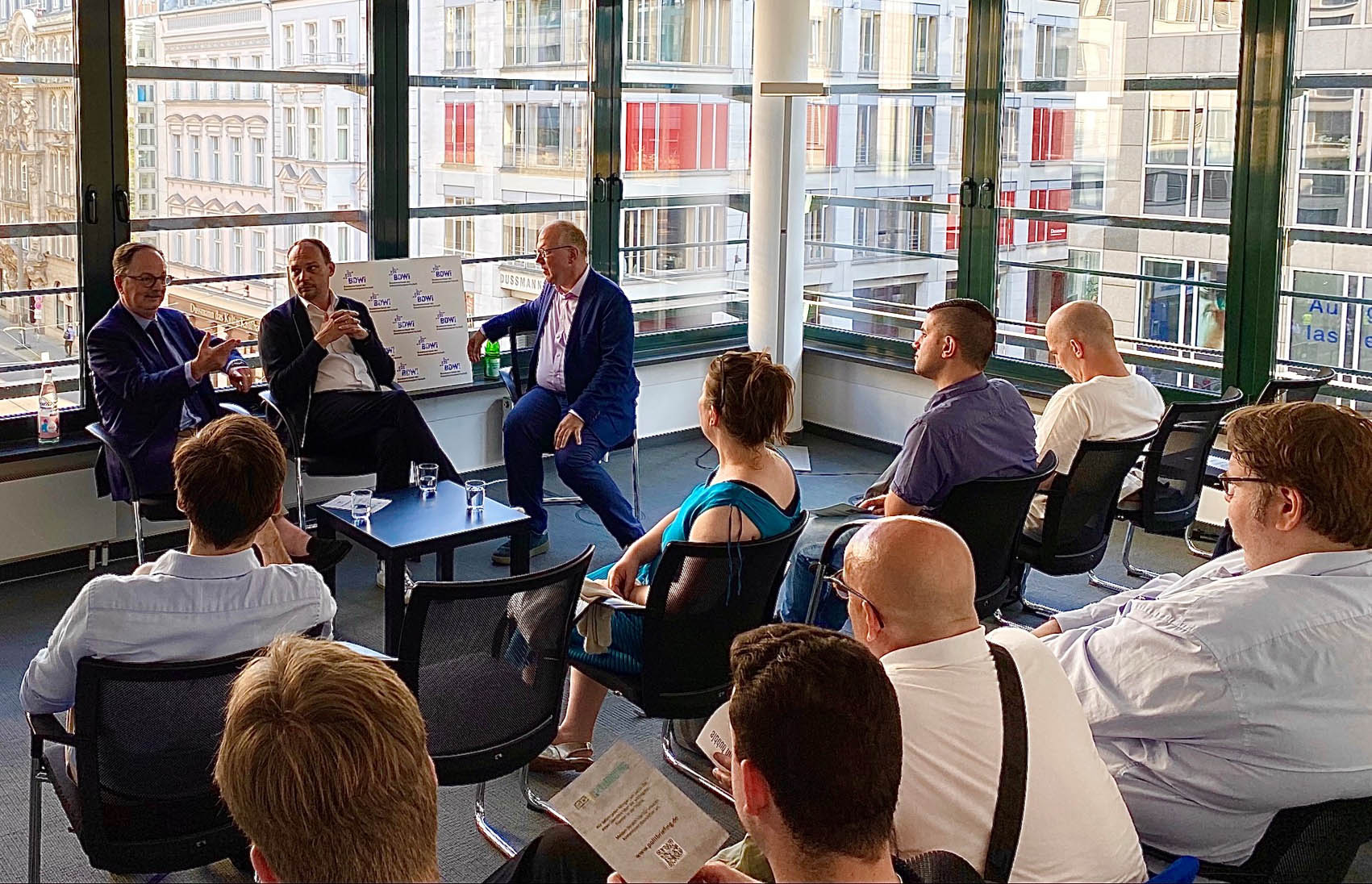 Der Bundesverband der Dienstleistungswirtschaft (BDWi) und die BdKom-Fachgruppe Verbände haben einen Talk zu Narrativen im Politikbetrieb mit Christian Koof (SKM Consultants) und Thomas Mühlnickel (ASK Agentur für Sales und Kommunikation) organisiert. Trotz der parlamentarischen Sommerpause und mehr als 30 Grad Außentemperaturen / im Veranstaltungsraum war es deutlich kühler / wurde engagiert diskutiert.